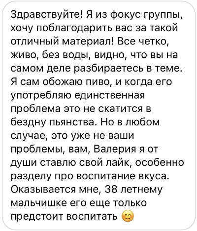 Качественный результат: эксперт получила поток позитивных отзывов и статус «пивного эксперта №1» в своем сегменте.