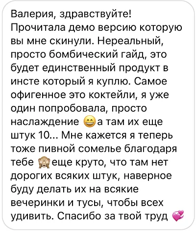 Эти отзывы сделали взрыв в сторис: «Лера, гайд — бомба!», «Скринила все, жду полный».